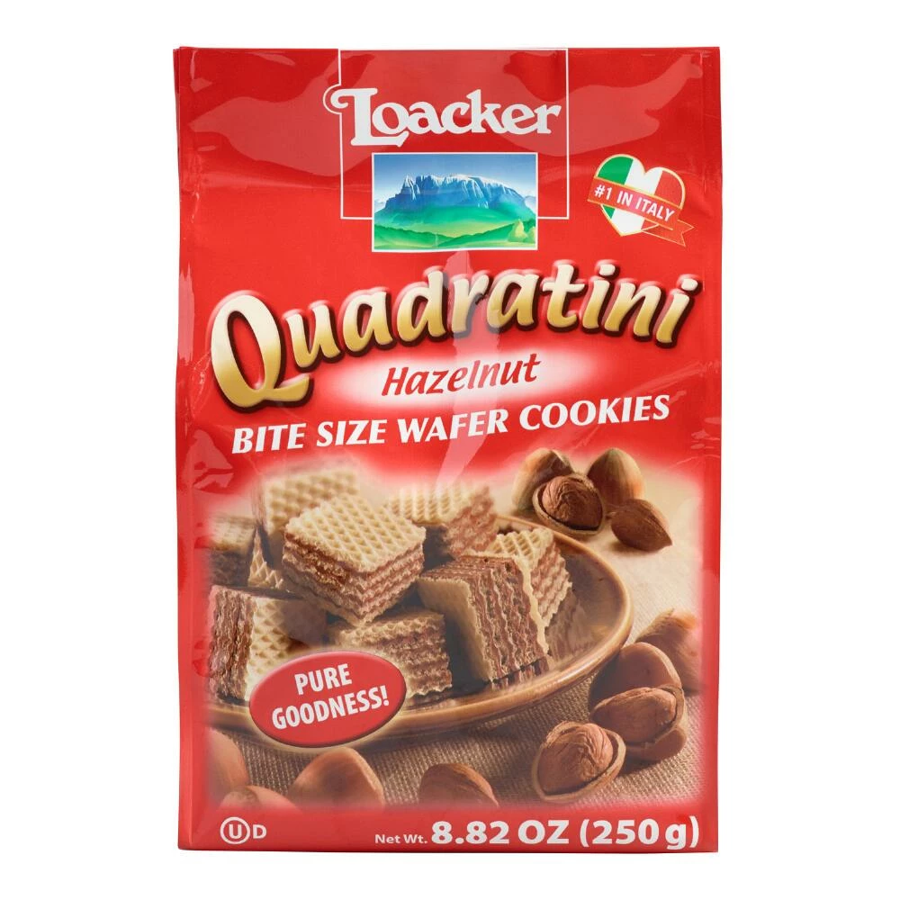 Bite-sized wafers filled with four layers of delicious hazelnut cream, these Quadratini treats stay perfectly crunchy in their resealable bag. For over 80 years, the name Loacker has been synonymous with their uniquely satisfying Quadratini wafer cookies. These crisp and creamy hazelnut squares are so irresistible you’ll find it hard not to eat the entire bag in one sitting.