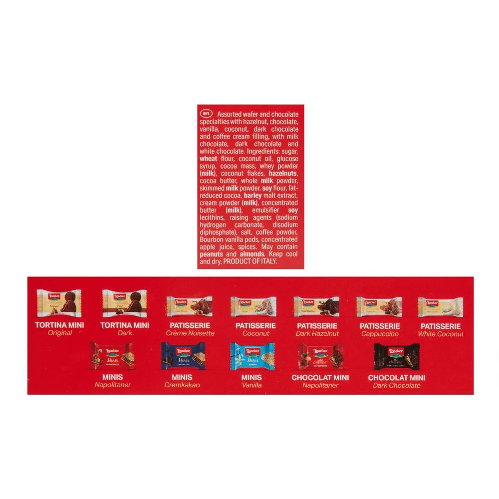 - Contains tree nuts, dairy, soy and wheat; may contain peanuts