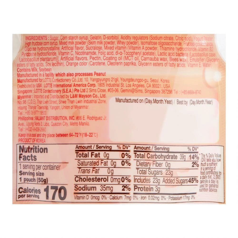 - Yogurt-flavored gummy candy