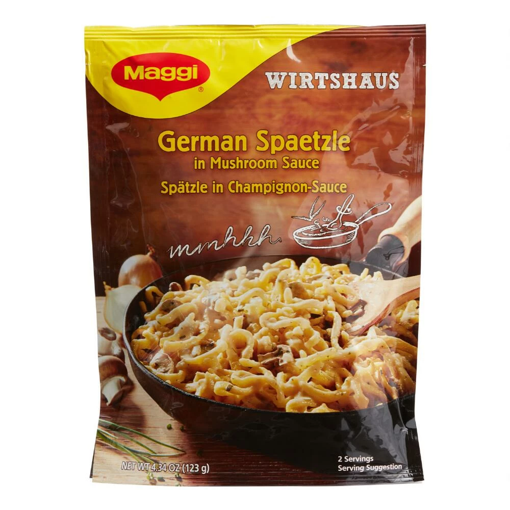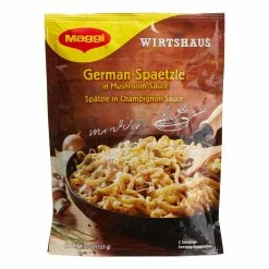 Authentic German spaetzle egg noodles are seasoned with creamy mushroom sauce for a rich, velvety meal that’s ready in just minutes.