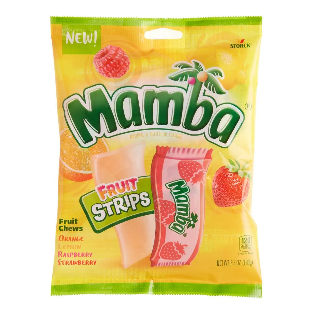 Bursting with bright, juicy fruit flavors, these chewy candy strips are a delightful treat. Featuring orange, lemon, raspberry and strawberry fruit flavors, each delicious Mamba chew is individually wrapped to preserve maximum juicy freshness in every sweet bite.