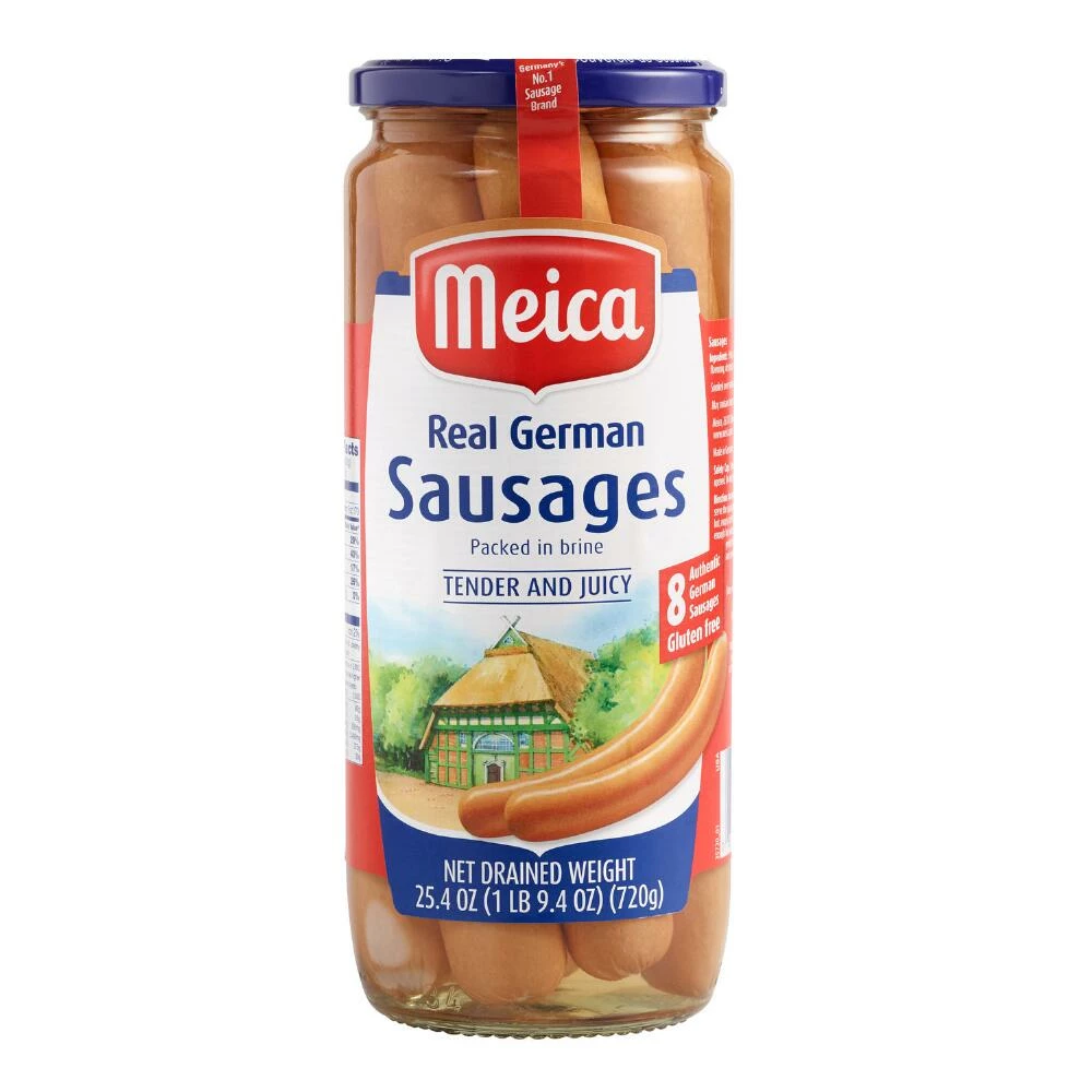 These authentic German sausages from Meica are made with a classic recipe featuring pork seasoned with salt and spices, smoked over beech wood and packed in a tangy brine. An old-world predecessor of the American hot dog, these puppies are delicious grilled outdoors, wrapped in pastry for pigs-in-blankets or paired with beans.