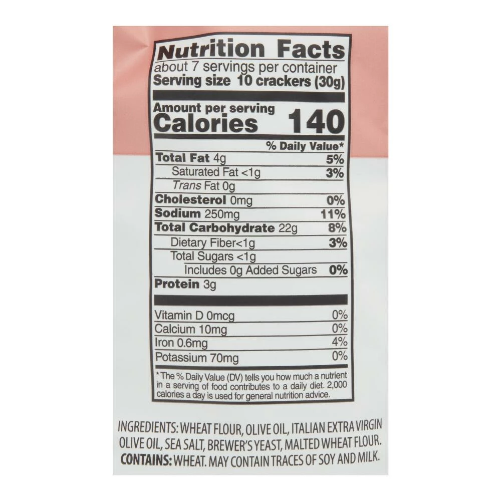 Experience the savory flavor of focaccia bread, olive oil and sea salt with these delightfully crunchy mini toasts. Their traditional oven-baked goodness and quality ingredients make them an appetizing crisp base for cheeses, meats and pickles, or a satisfying and wholesome snack. Keep your pantry stocked with these Italian favorites to have on hand for parties and informal gatherings.