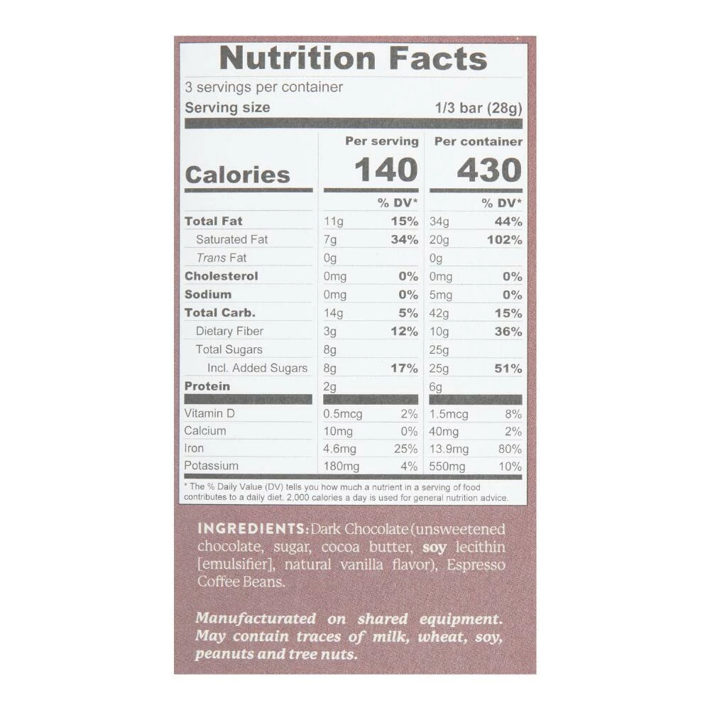 - Made of dark chocolate and roasted espresso beans