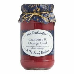 Beloved in the United Kingdom for its sweet blend of fruit flavors, Mrs Darlington’s cranberry and orange curd is a zesty treat for your taste buds. Spread this tried-and-true family recipe on toast, bagels or scones to experience a traditional English teatime favorite. A breakfast staple since the 1980s, Mrs. Darlington’s preserves, curds and chutneys have that irresistible, fresh-from-the-orchard flavor.