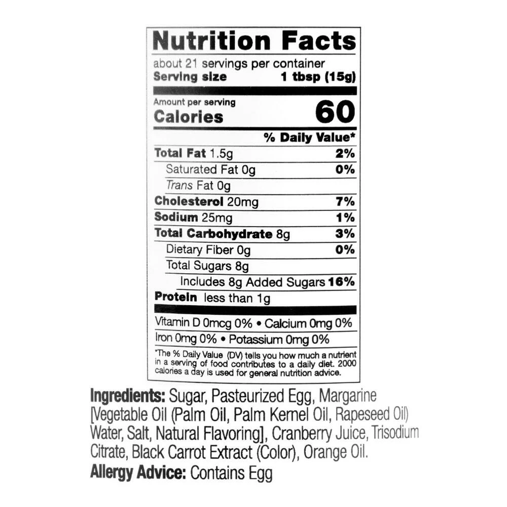 - Made with sugar, pasteurized eggs, cranberry juice and orange oil