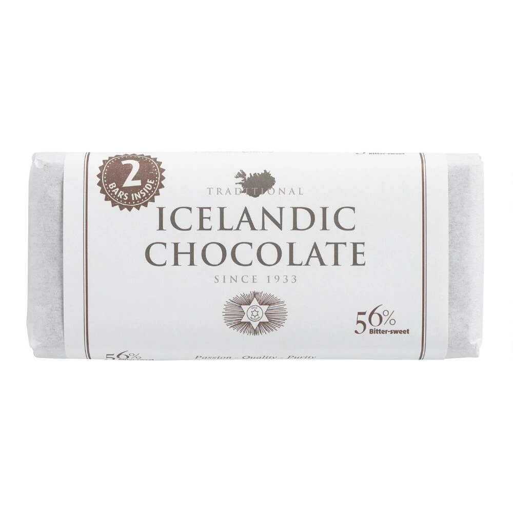 A favorite Icelandic treat since it was initially sold as baking chocolate in 1933, this sumptuous chocolate bar is crafted of rich 56% dark chocolate. Presented in a unique double-bar package, it’s perfect for savoring with coffee or taking along on hikes and car trips for a delicious pick-me-up.