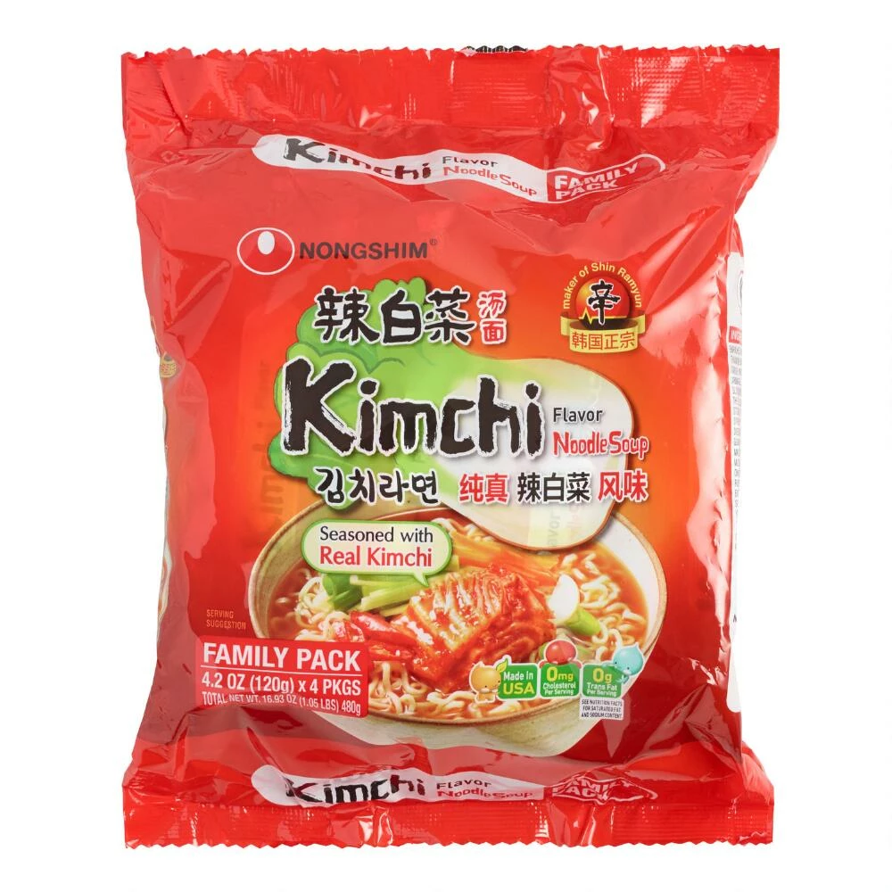 - Made with wheat noodles and kimchi