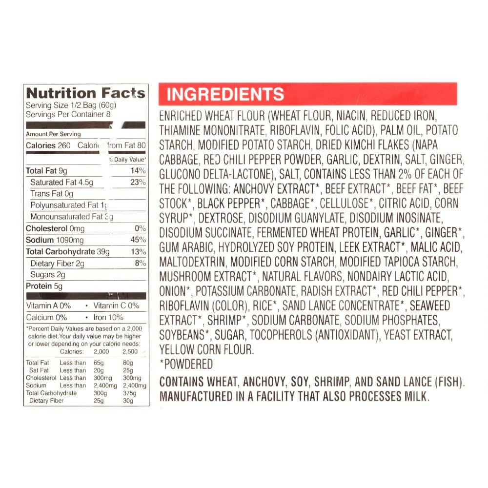 - Contains wheat, soy and shrimp; manufactured in a facility which processes milk