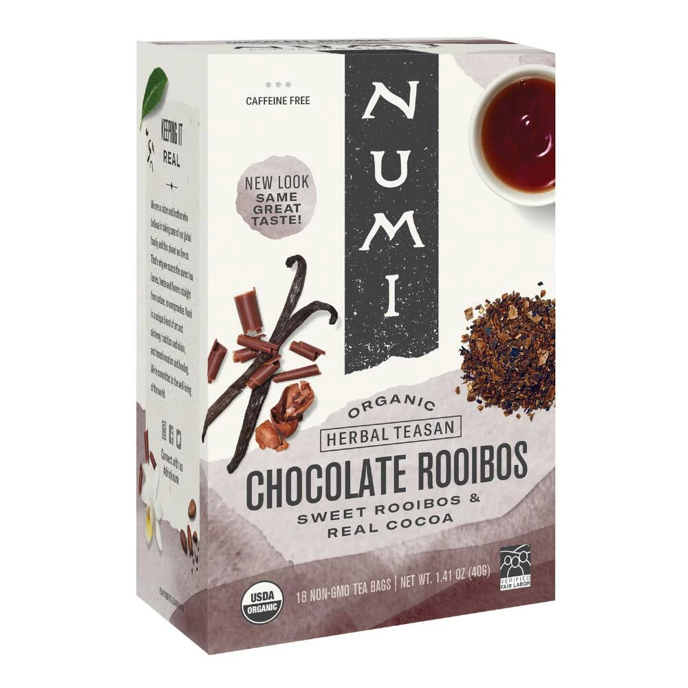 Creamy chocolate blended with lightly sweet, earthy rooibos makes an organic, caffeine-free tea that awakens the taste buds with every sip. Numi strives to make the world a better place through their Fair Trade practices and foundation, providing clean water to their farming communities and so much more.