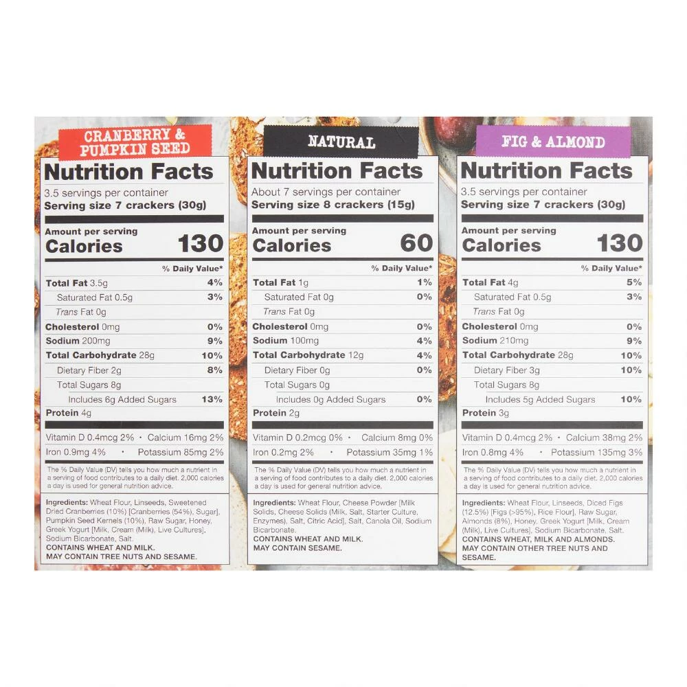 - Includes Cranberry Pumpkin Seed Toasts, Fig and Almond Toasts and Natural Wafer Crackers
