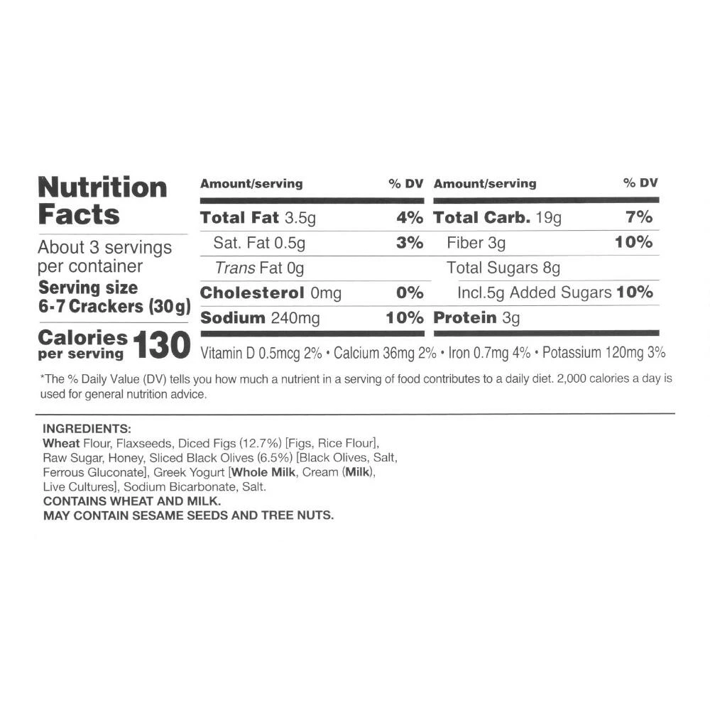 Crafted to perfection in small batches, these tasty crackers are loaded with figs and black olives for a nutritious snack you can enjoy on its own or with your favorite dips. A perfect accompaniment to cheese and charcuterie boards, their delicious, crispy texture pairs well with all your favorite meats and spreads.