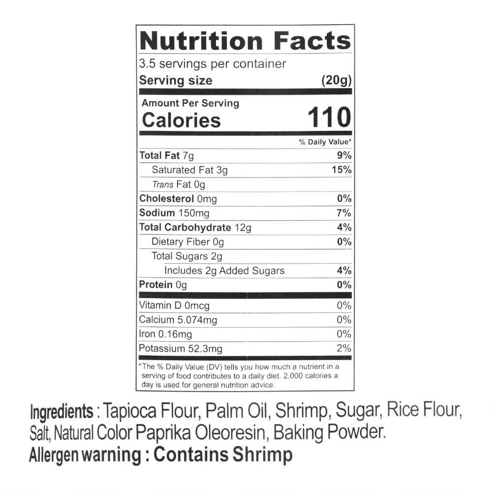 - Made with tapioca flour, shrimp, sugar, rice flour and salt