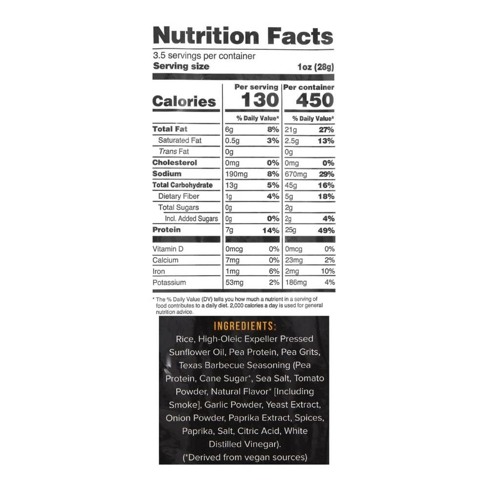- Made with rice, pea protein, sea salt, barbecue seasoning and spices