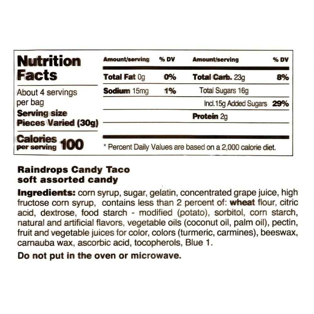 This authentic-looking taco shell, which is actually made of cardboard, holds a selection of gummy candy in the shapes of tomatoes, cheese, lettuce, ground beef and salsa, to make it look just like the real Mexican food. Made up of 23 assorted fruit-flavored gummy chews, it makes a fun addition to party bags and gift baskets.