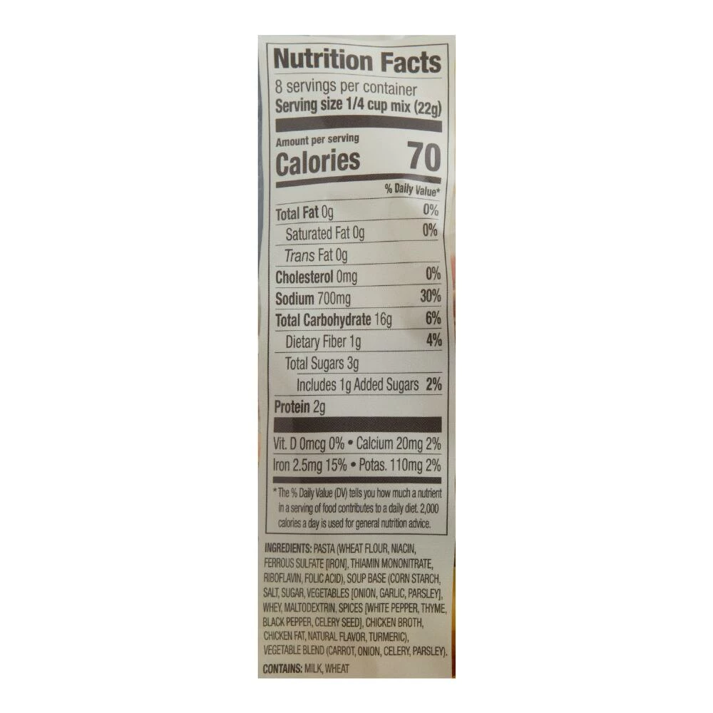 - Made with pasta, chicken broth, carrots, onions, celery and spices