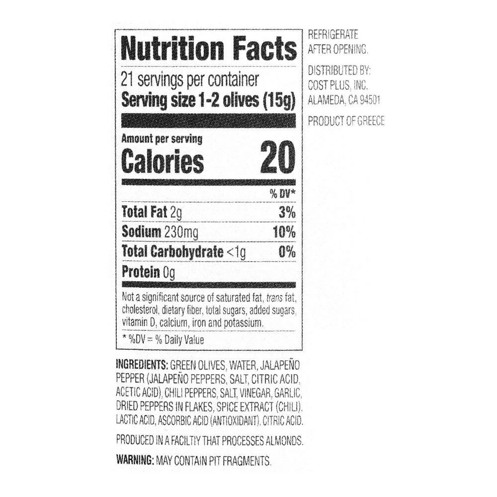 Brought to you from the Halkidki region of Greece, these authentic green olives are hand-stuffed with hot jalapenos for a unique and savory combination of flavors.