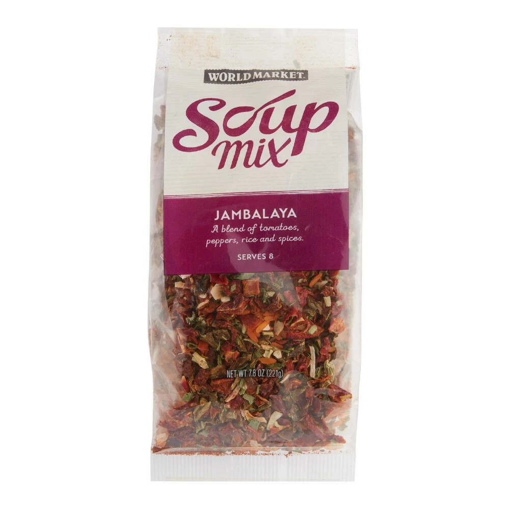 Our jambalaya soup mix is an exclusive blend of tomatoes, peppers, rice and spices. It’s a snap to prepare with just water, shrimp, sausage and fresh vegetables. We suggest serving it with chopped scallions and Cajun pepper sauce for a real Southern-style kick.