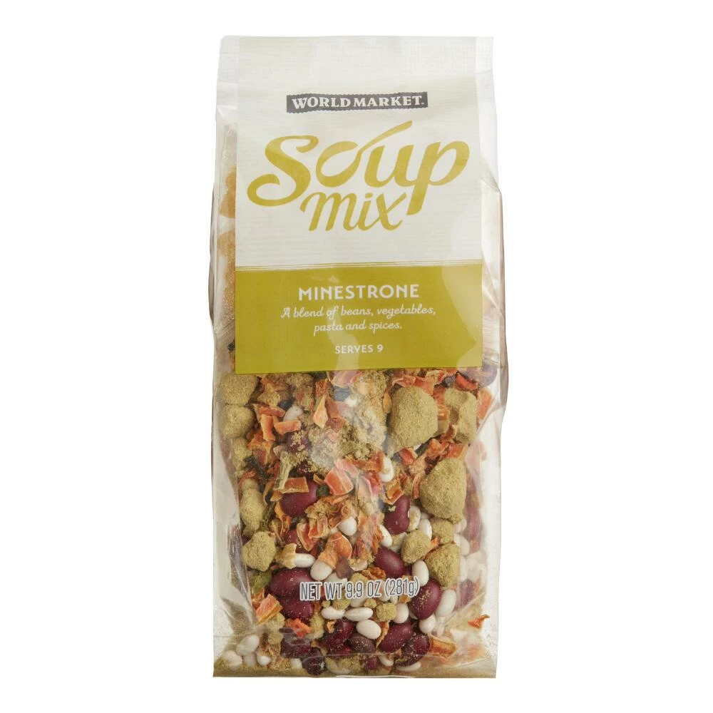 Our exclusive Italian-style minestrone soup mix blends hearty vegetables and beans with pasta and fine spices. This classic soup base is a snap to prepare with beef stock, Italian sausage, tomato sauce and water. We suggest serving it with grated parmesan cheese on top and buttered garlic bread on the side for a nourishing meal that’s satisfying at any time of day.
