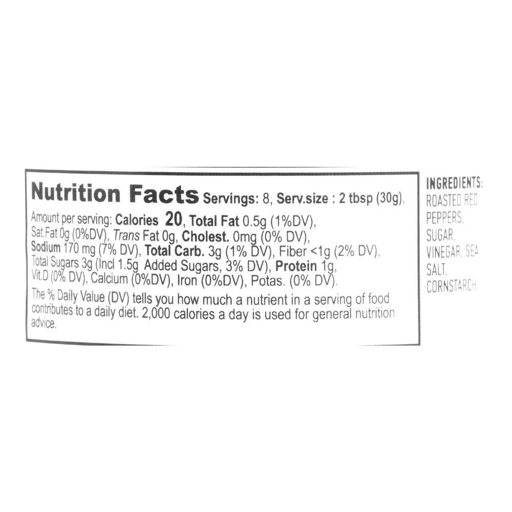 Made in Greece with sweet and tangy fire-roasted red bell peppers, our Mediterranean bruschetta is a deliciously simple topping for crostini and grilled breads. A crowd-pleasing addition to antipasto platters, this chunky red-pepper appetizer is also a choice ingredient for pizzas, Italian sandwiches, veggie wraps, toasted flatbreads and more.