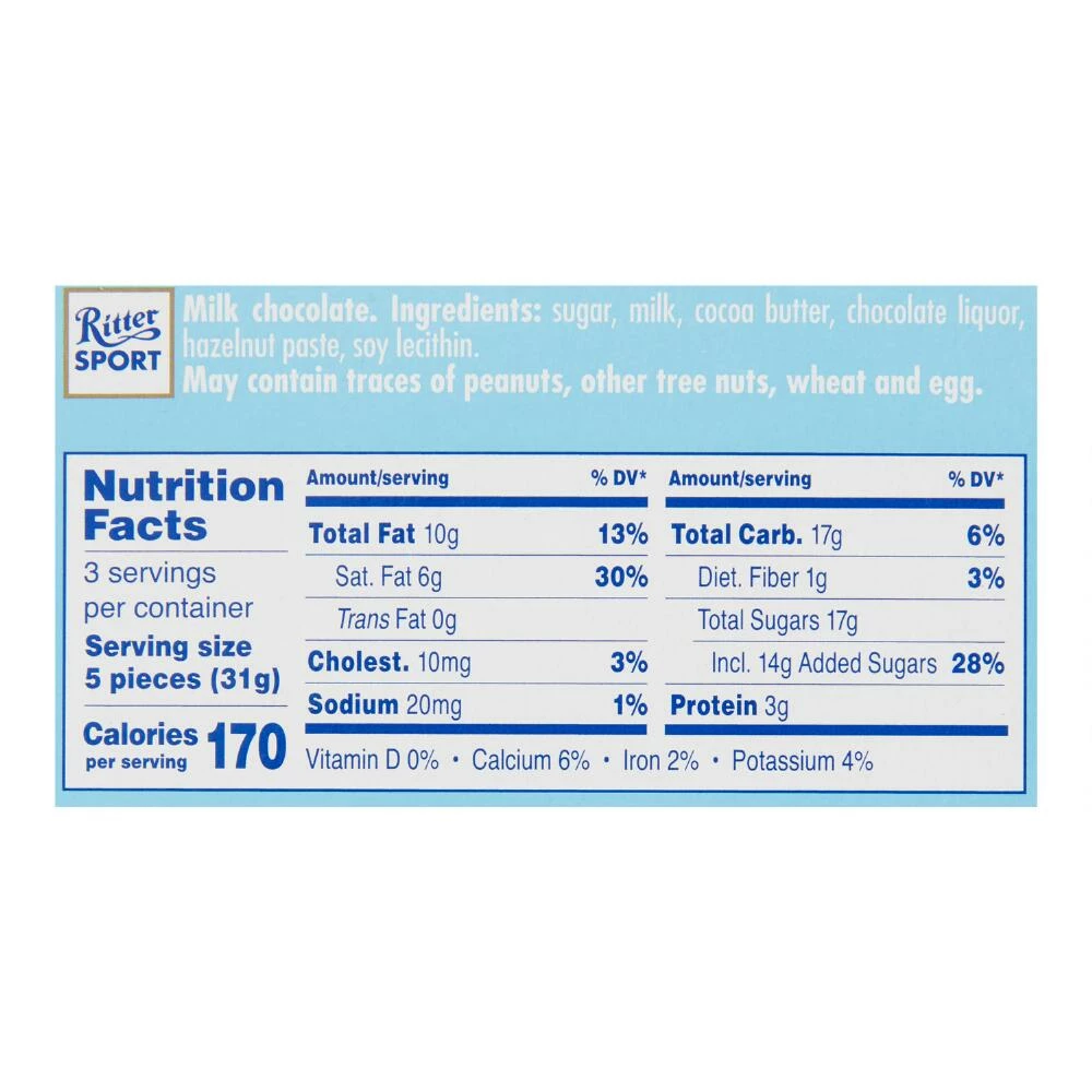 - Contains milk and soy; may contain traces of peanuts, tree nuts, wheat, and egg