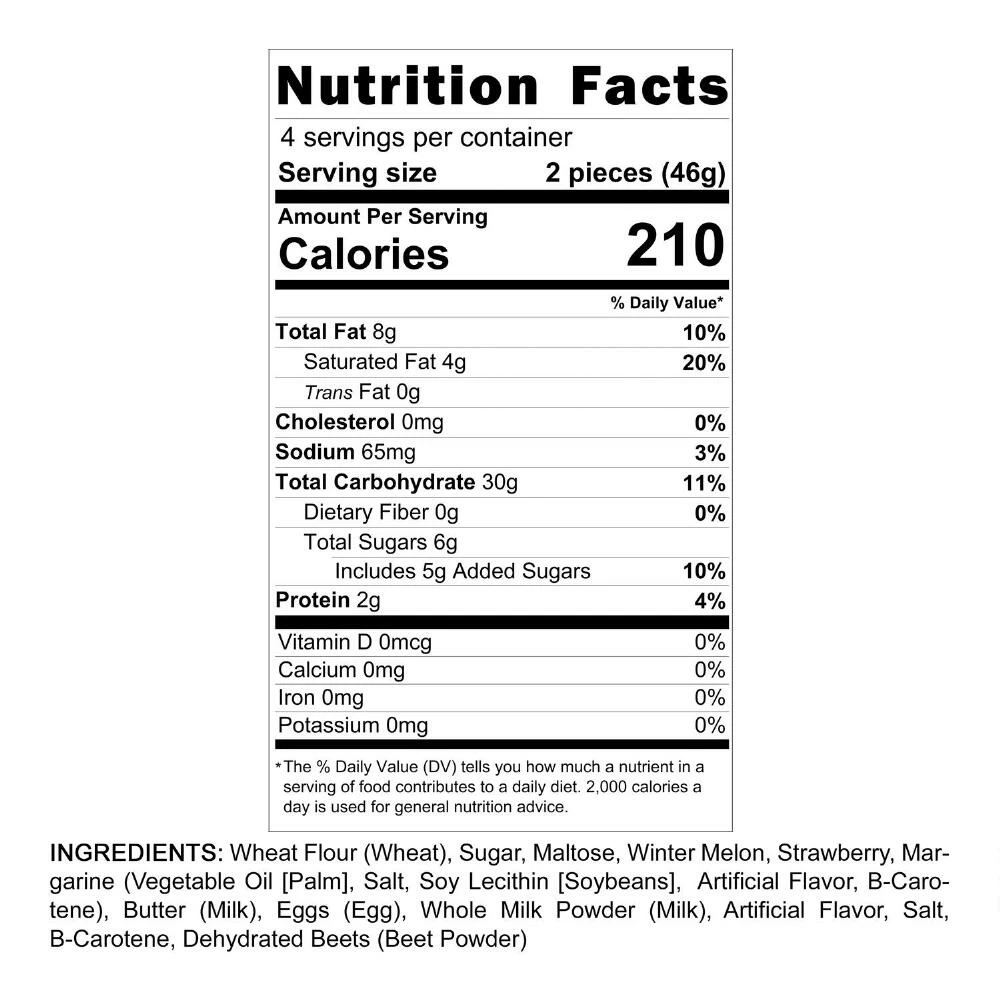 A bestselling treat in Taiwan, these soft and moist shortcakes are filled with sweet strawberry jam. Each of these eight specialty pastries is made with locally grown Taiwanese strawberries and real butter, with no artificial ingredients. Individually wrapped and ready to eat, these authentic Asian cakes are baked fresh by the dessert masters at Royal Family.