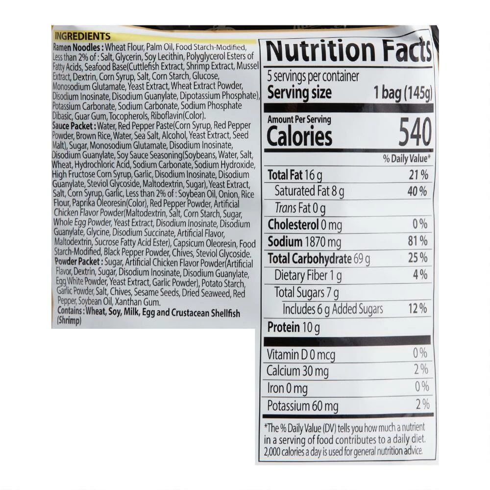 - Made with wheat noodles, chicken flavor, seaweed, sesame and hot sauce