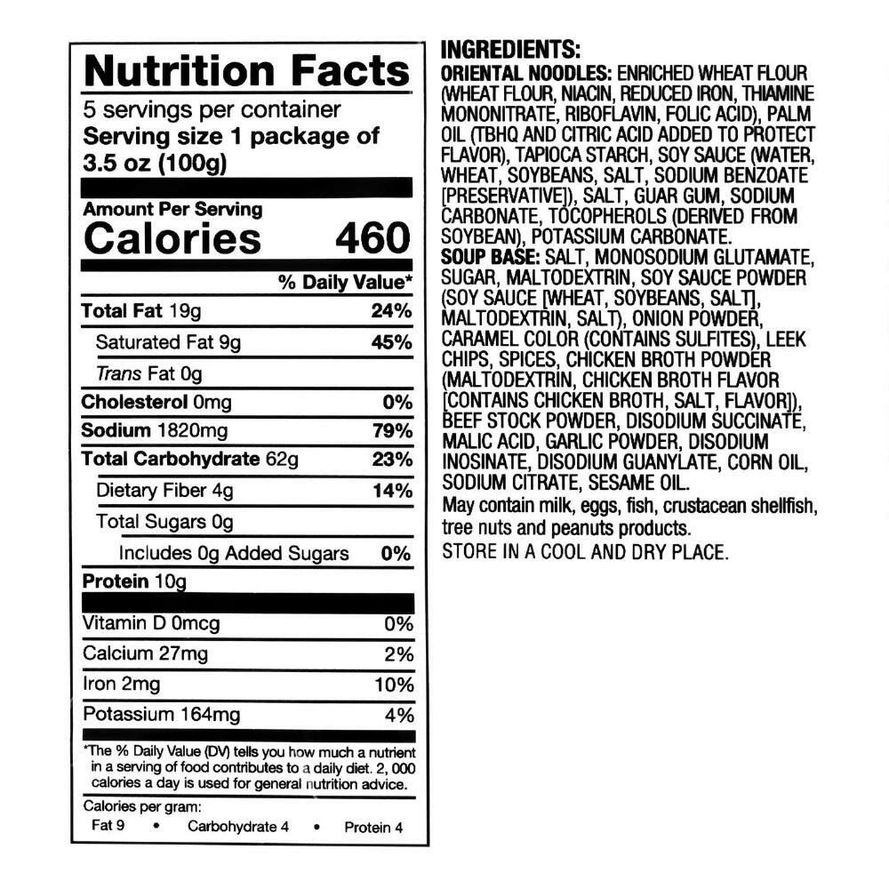 - Made with wheat noodles, soy sauce, onions, leeks, garlic and chicken broth
