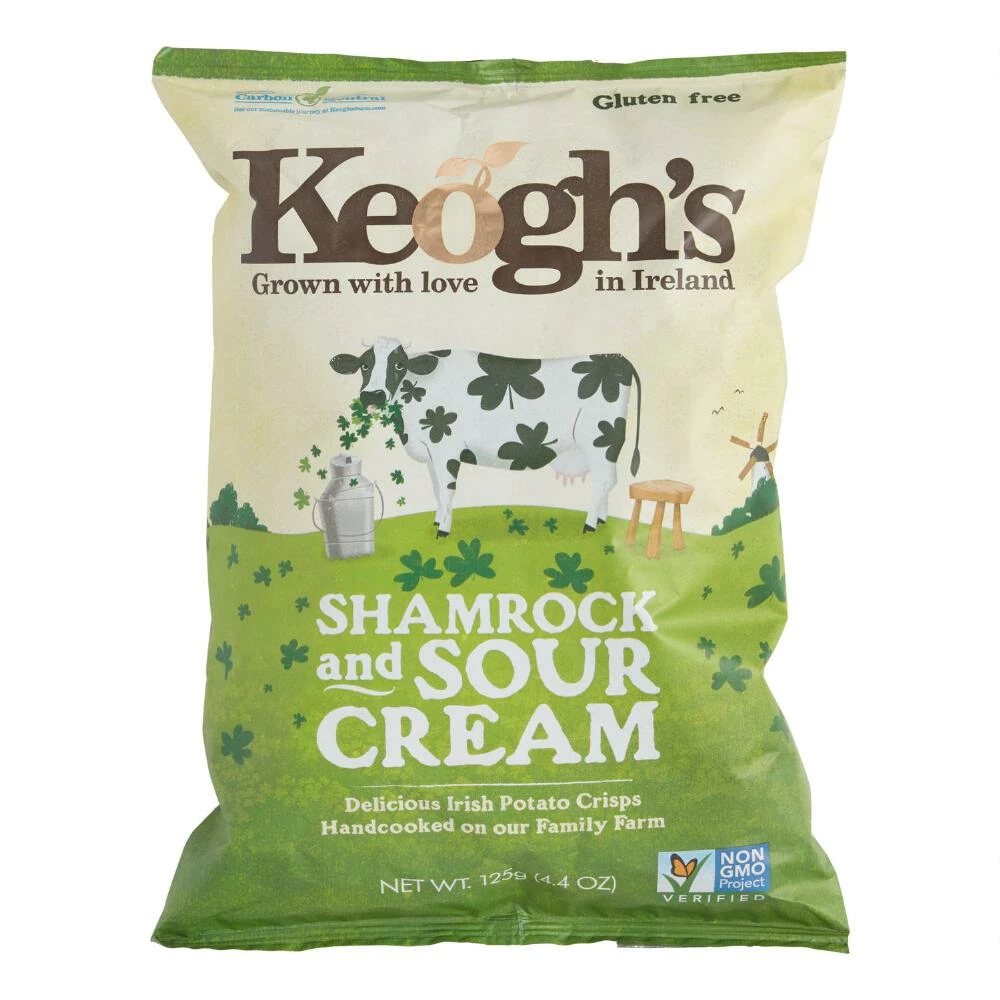 Hand-cooked in small batches using Irish potatoes, these potato crisps are seasoned with fresh Irish shamrock and tangy sour cream. Set out for St. Patrick’s Day parties, or enjoy out of the bag for a savory, anytime snack.