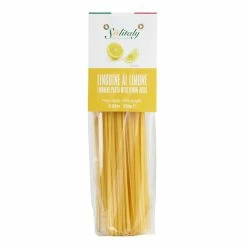 A traditional pasta from the Puglia region in southern Italy, these long linguine noodles are crafted with durum wheat semolina, water and lemon. Made using the Italian bronze-cut method, this citrus-infused pasta has a rough, porous texture that makes it ideal for absorbing your favorite sauces.