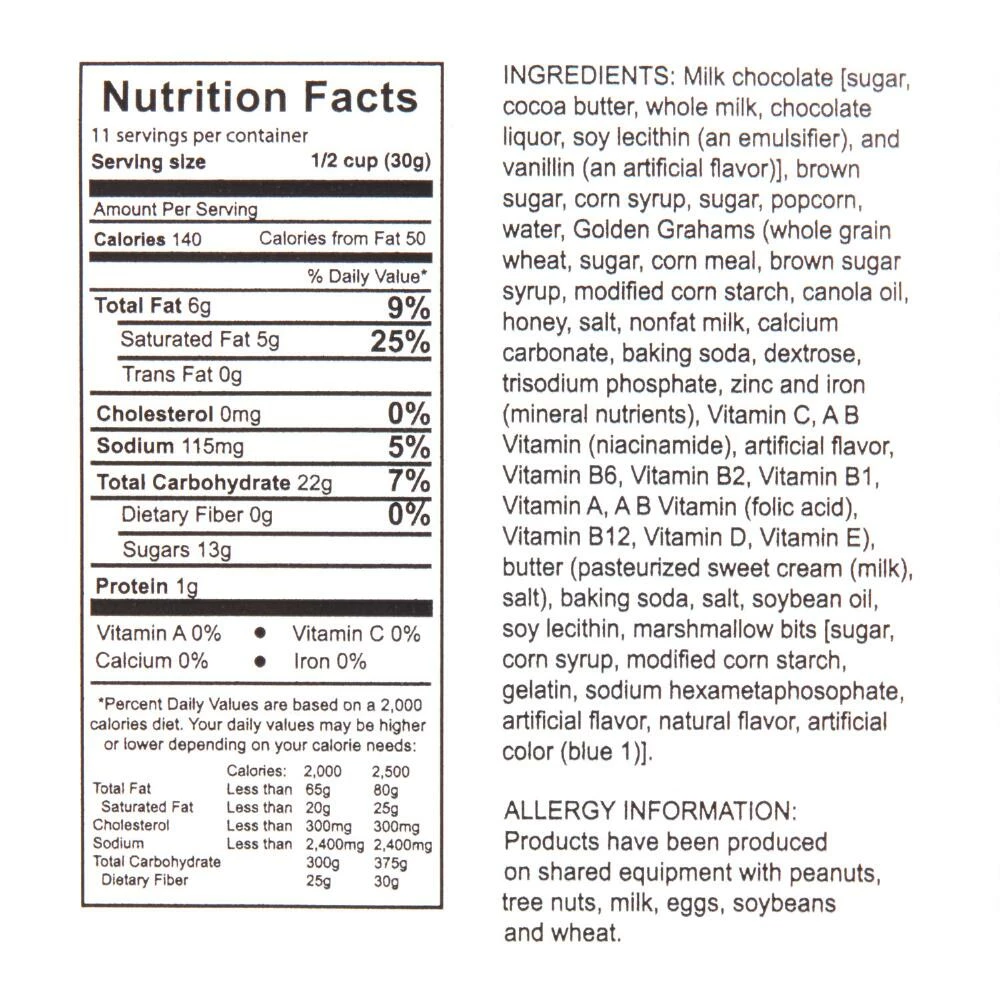 - Made with caramel popcorn, milk chocolate, marshmallows and graham crackers