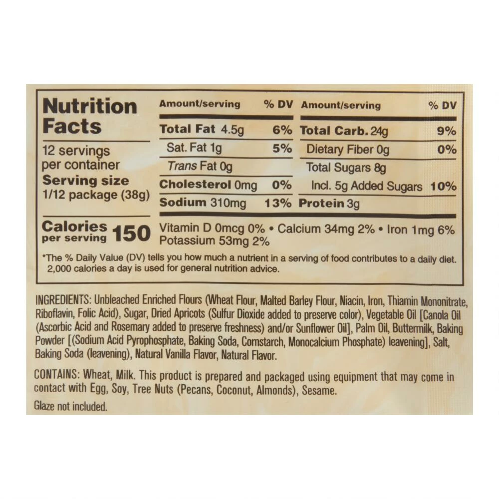 - Made with unbleached flour, sugar, apricots, oil and buttermilk