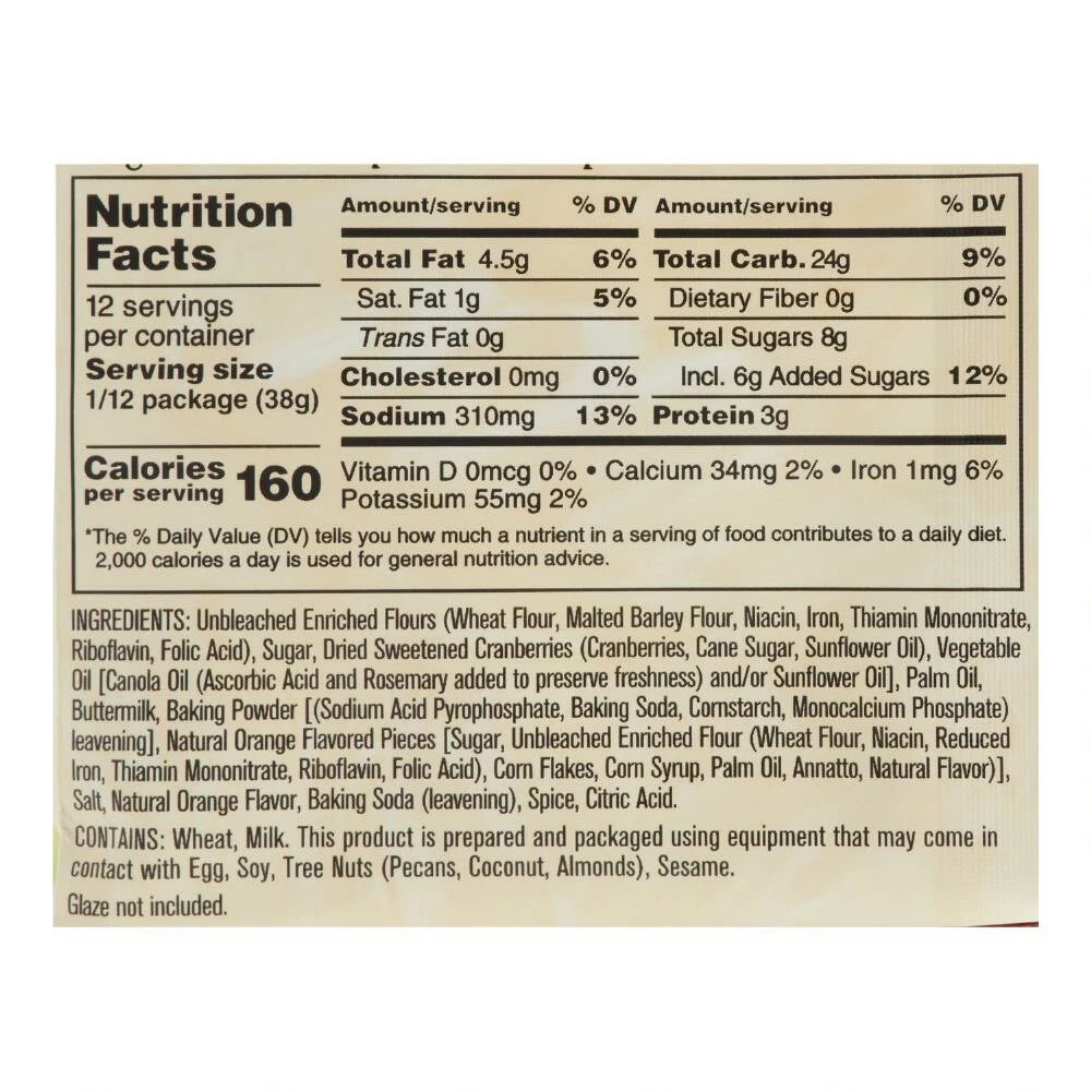 - Made with unbleached flour, sugar, cranberries and orange bits
