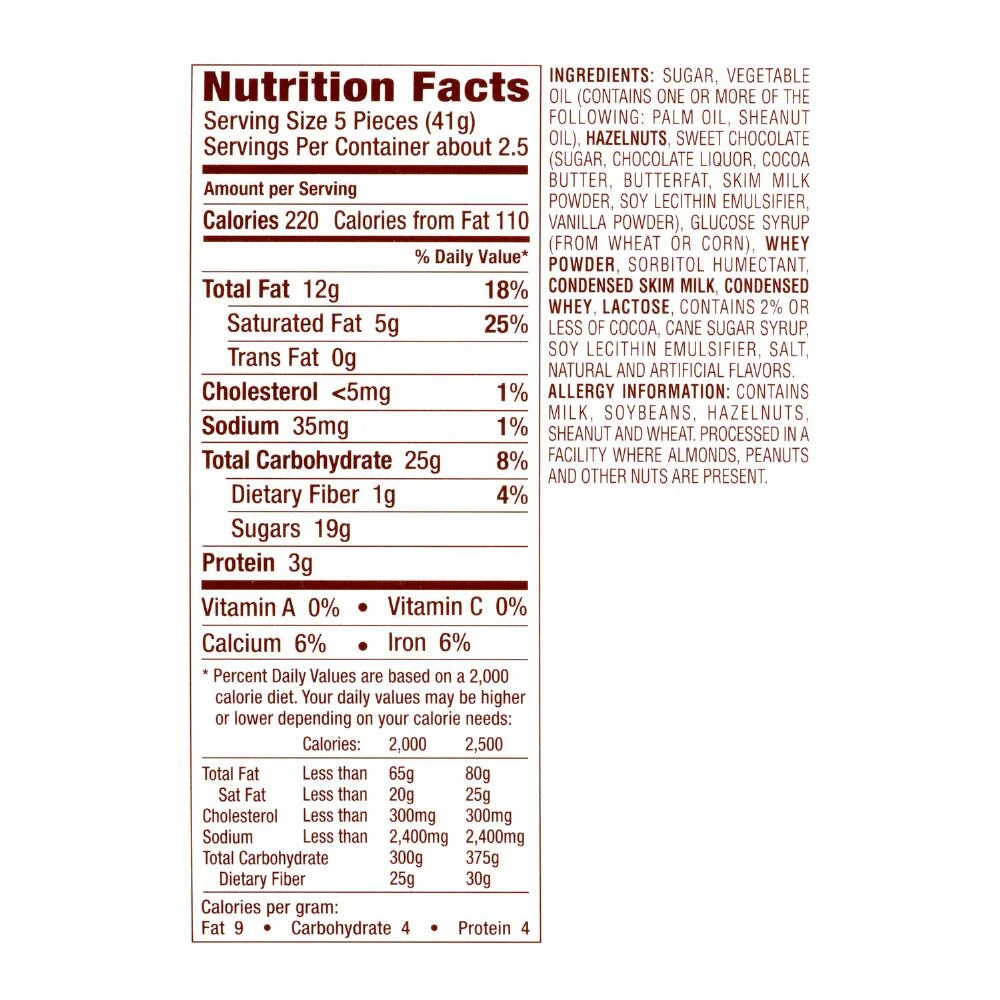 - Contains dairy, soy, tree nuts and wheat