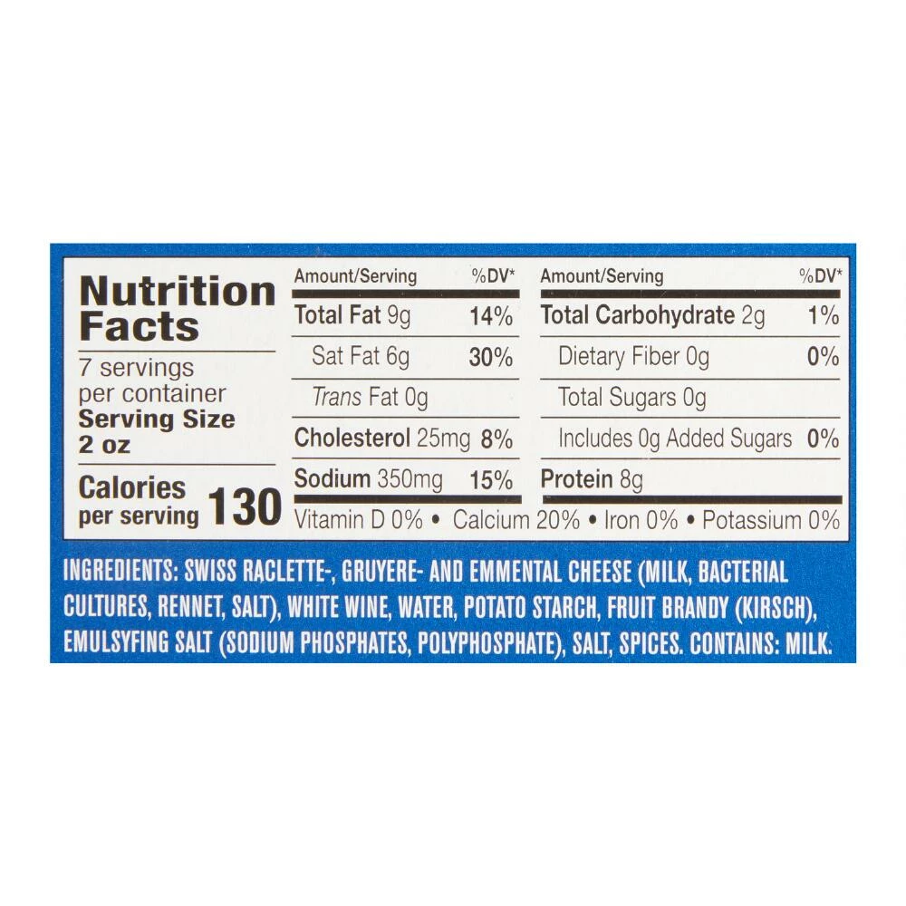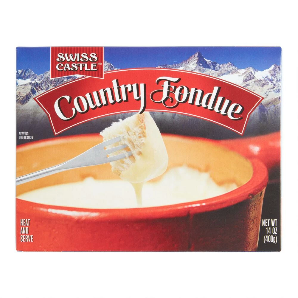Gather friends and family to share a communal meal of authentic country-style Swiss Castle fondue. Following a traditional Swiss recipe, a blend of wine, brandy and spices are mixed into creamy raclette, gruyere and emmental cheeses to create a gourmet comfort food. A cozy main dish or fun appetizer, this heat-and-serve fondue is perfect alongside chunks of toasted bread, tart apples, veggies or crackers.