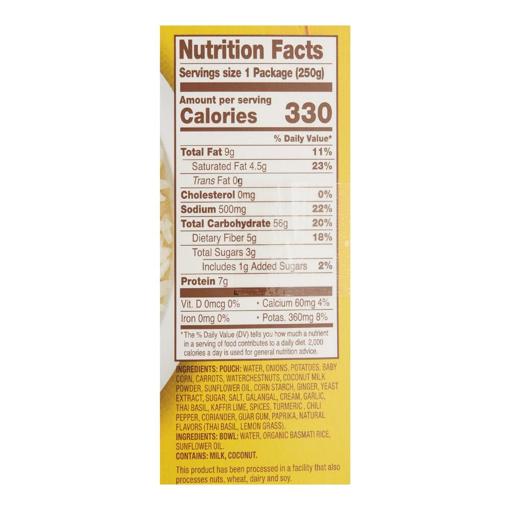 - Made with baby corn, ginger, Thai basil Kaffir lime, spices, coconut milk and basmati rice