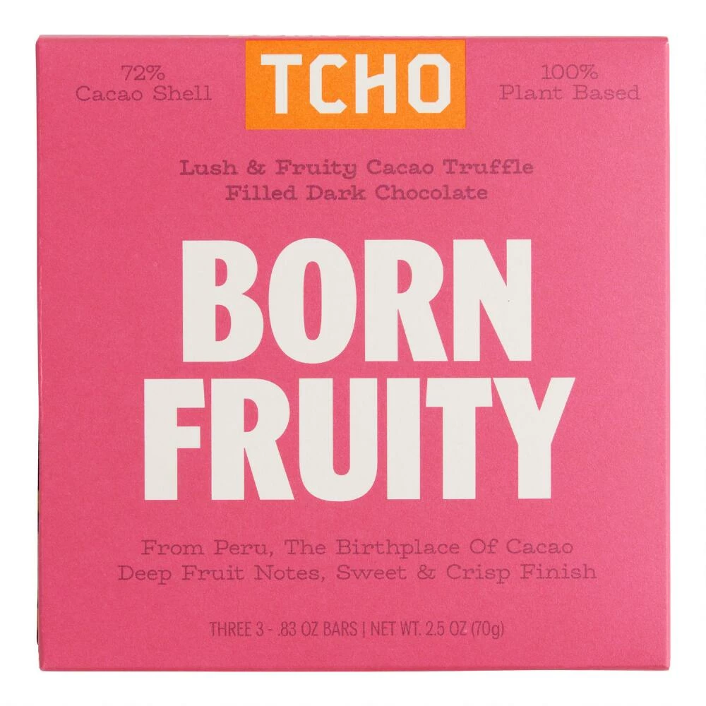 Crafted with Fair-Trade certified 72% dark chocolate, this gourmet candy bar is filled with luscious cocoa truffle sourced from Peru. Named for its distinctive fruit notes and sweetly crisp finish, this is a decadent indulgence for lovers of artisan chocolate. TCHO helps support their cacao farmers to make sure each bite is crafted with care.