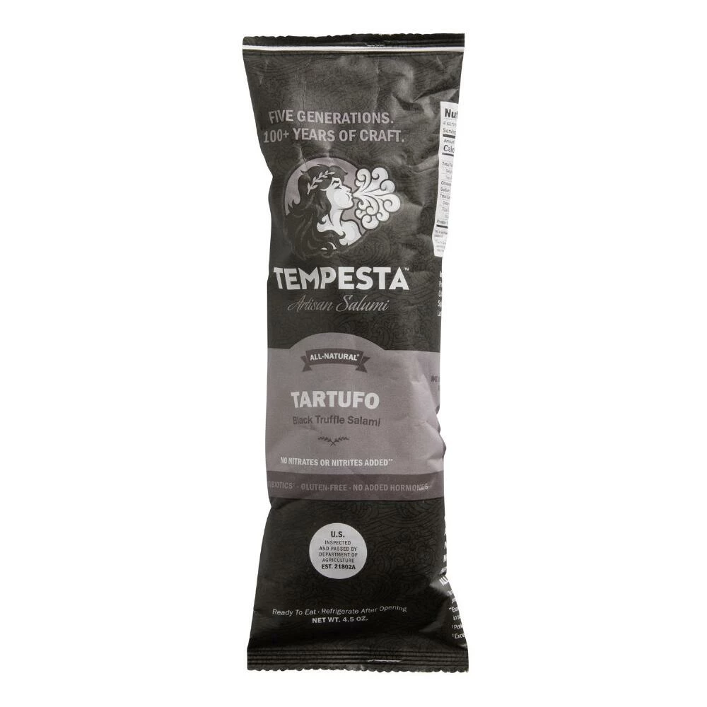 The artisan sausage specialists at Tempesta have infused this uncured pork salami with the gourmet Italian black truffles of Tuscany’s famous Savini Tartufi. A heritage salami made with vegetarian-fed, hormone and antibiotic-free pork, this delicious cold cut is a premium treat filled with earthy Tuscan truffles and seasoned with black Tellicherry peppers.