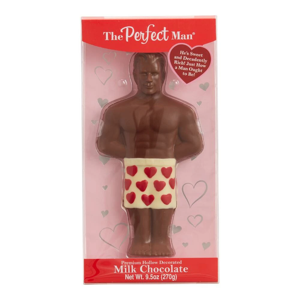 Behold the perfect man: made of milk chocolate, he’s incredibly rich, silkily smooth, sweet as can be and looks fantastic. This jumbo hunk decorated with heart-patterned boxers is a little hollow inside but we promise he’s totally delicious. A fun and funny novelty gift for Valentine’s Day and other special occasions, the gourmet quality of his Belgian chocolate form is no joke!