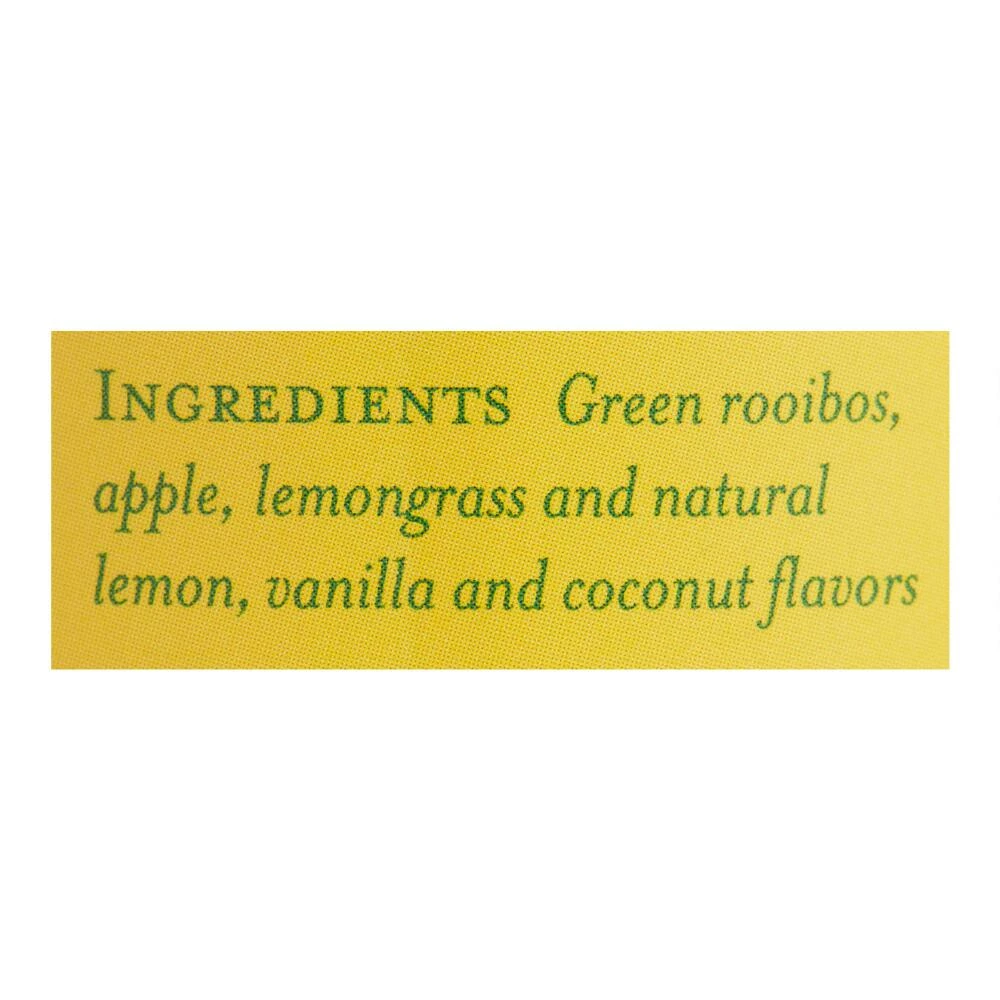 - Made of green rooibos, apple, lemongrass, natural lemon, vanilla and coconut flavors