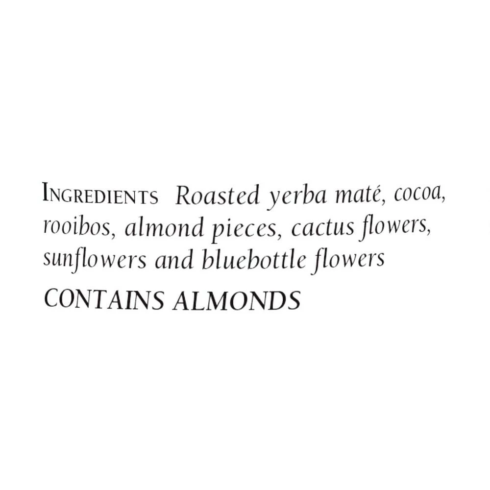 - Made of roasted Brazilian yerba mate leaves with cocoa, rooibos, almond, cactus flower, sunflower and blue bottle flowers