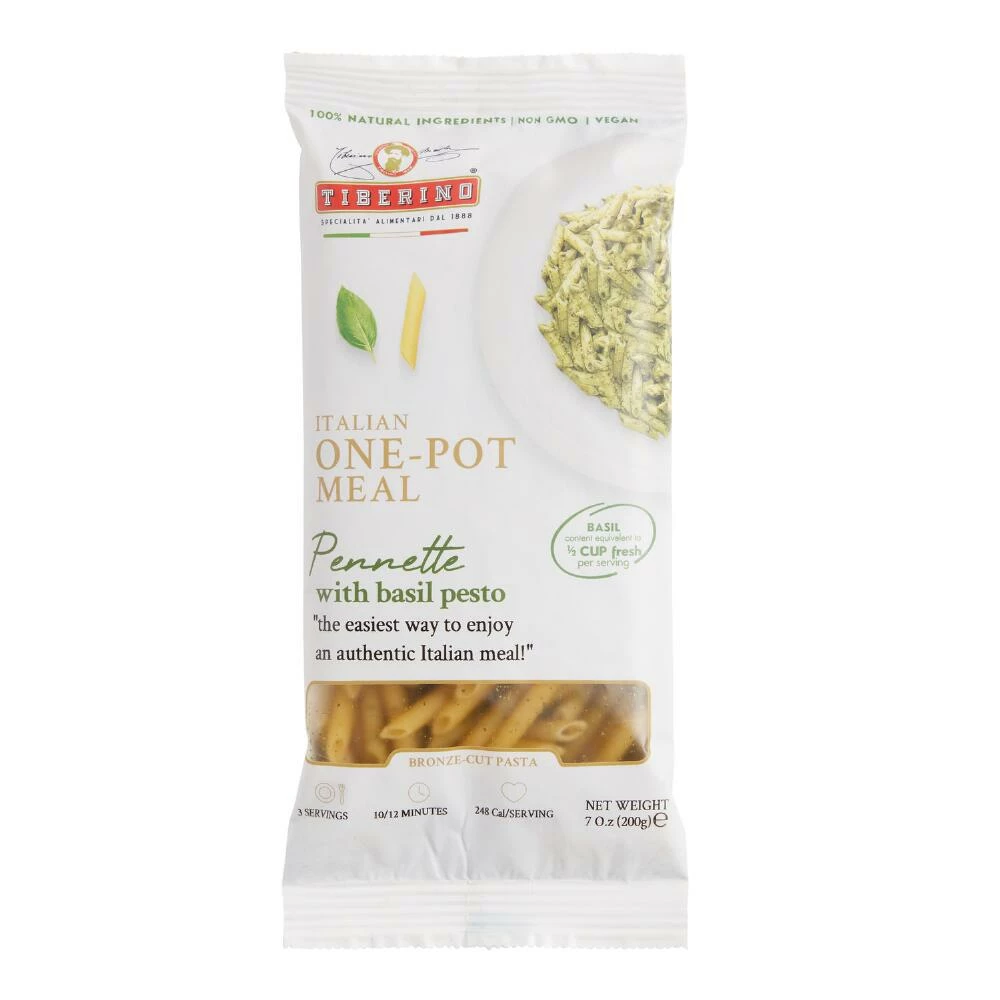 Enjoy an authentic Italian dish at home with Tiberino’s gourmet pennette with basil-pesto sauce, a one-pot meal handcrafted with the finest vegan ingredients. You only need a pan, water, a little oil and less than half an hour to cook a delicious dinner of pennette pasta in a fresh, herb-filled and dairy-free Genovese basil sauce. Founded in 1888, the Tiberino family shares the traditional meals of Bari, Italy with diners around the world.