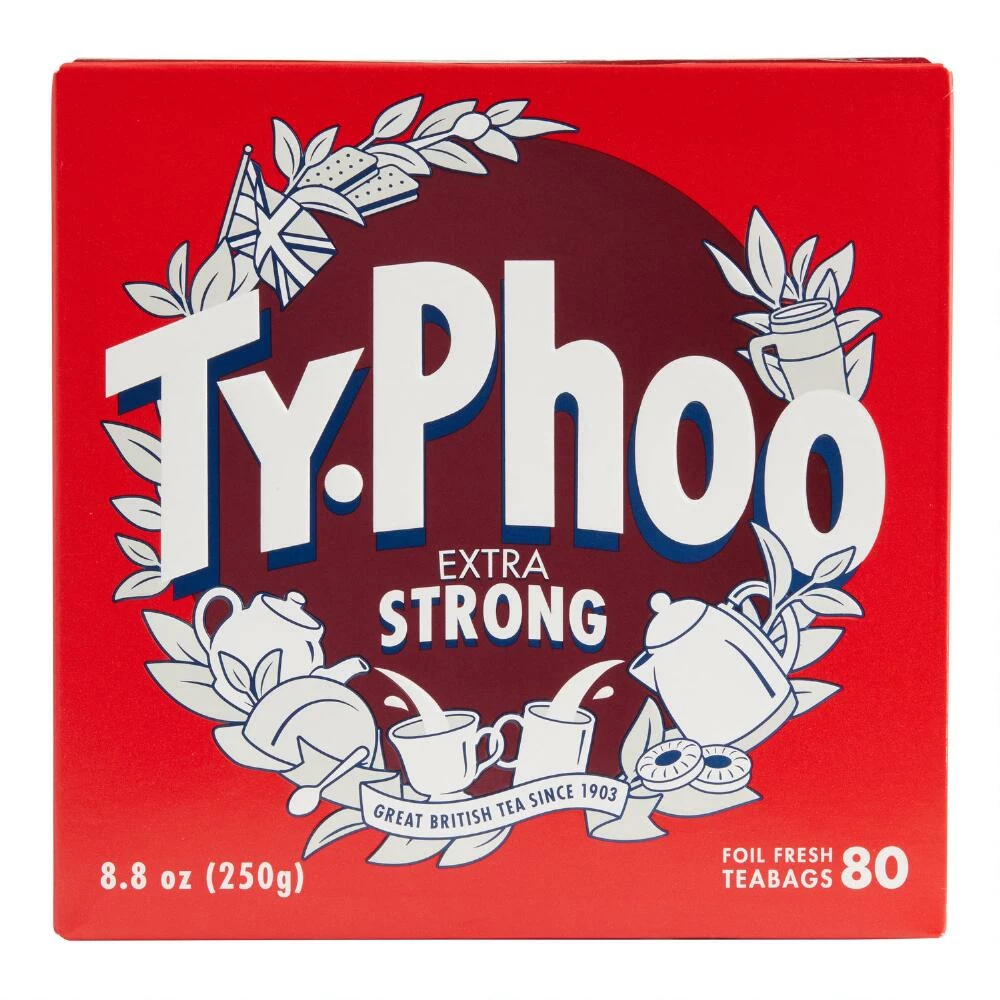 Start your day on a strong note with Typhoo’s extra-strong tea. The perfect pick-me-up, this powerful blend gets its intensely delicious flavor from premium tea harvested from estates around the globe. Launched in 1903 by Birmingham, England grocer John Sumner, Typhoo is still one of Britain’s favorite teas.