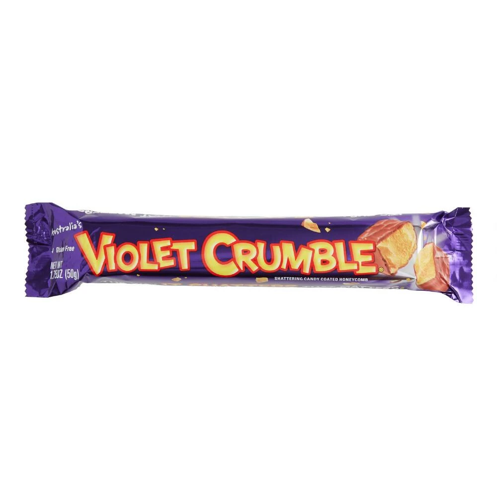 This scrumptious Violet Crumble bar is a premiere Australian candy treat. A crumbly honeycomb toffee center is covered in milk chocolate for an iconic Down Under candy bar with an irresistibly crispy crunch.