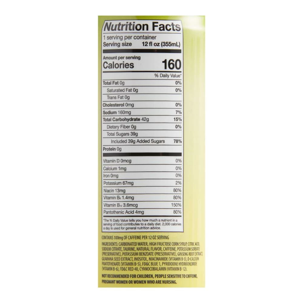 - Made with taurine, caffeine, ginseng root extract and guarana seed extract